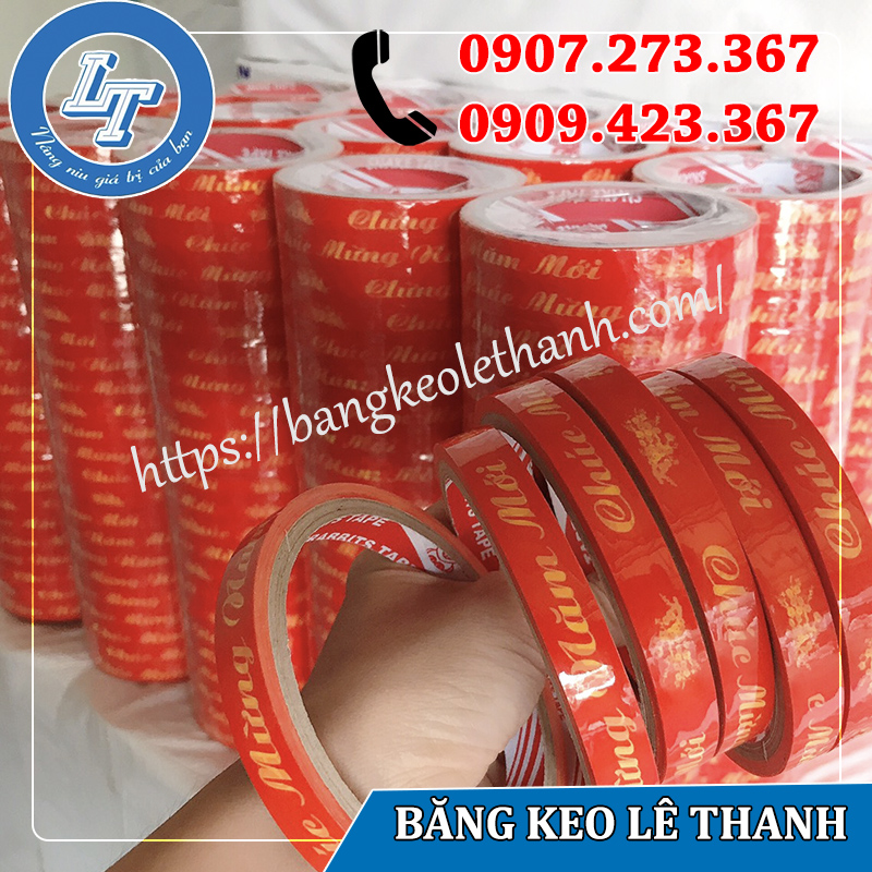 Lê Thanh cung cấp mọi loại băng keo trong, băng keo chúc mừng năm mới màu đỏ với kích thước và độ dày khác nhau. Bất kể khách hàng cần loại nào, số lượng là bao nhiêu đều có thể được phục vụ tức thì. Đặc biệt, toàn bộ sản phẩm đều được bán với giá xưởng nên vô cùng rẻ và cạnh tranh mạnh với thị trường chung.