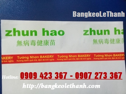Mỗi cây gồm 6 cuộn, mỗi bao gồm 20 cây (thông thường băng keo in logo được đóng vào bao, hoặc đóng gói bằng thùng carton theo yêu cầu của khách hàng). |